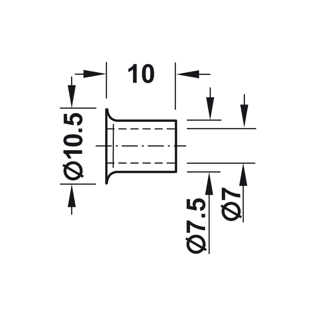 Bucha, Para embutir em furo com diâmetro de 7,5 mm