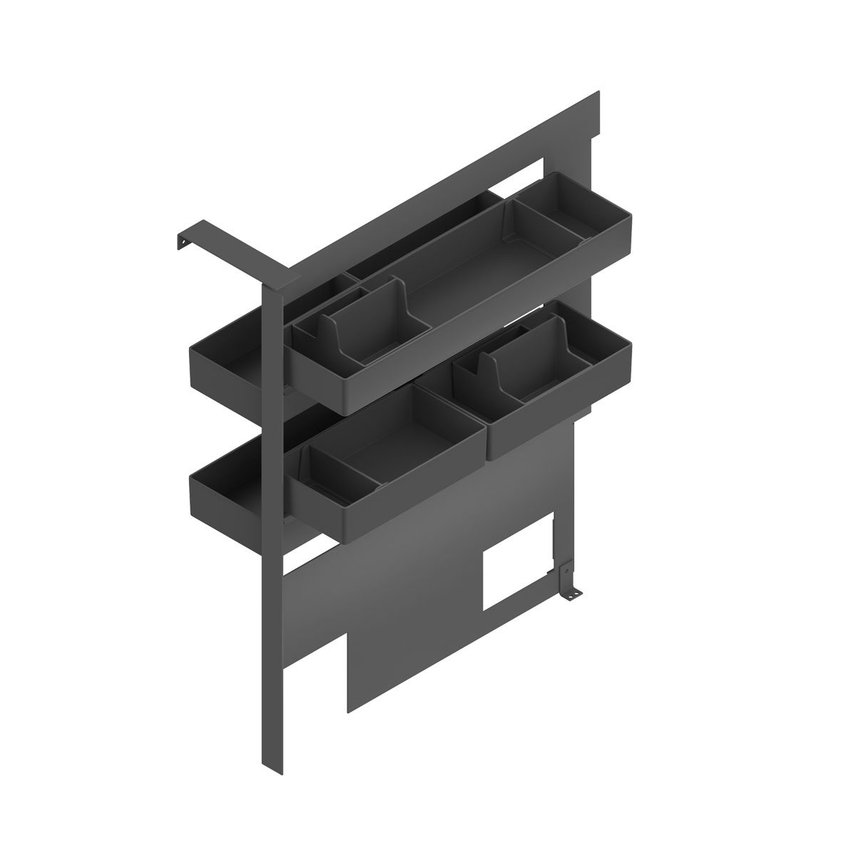 Inclui 4 cestos portáteis e acessórios de arrumação.