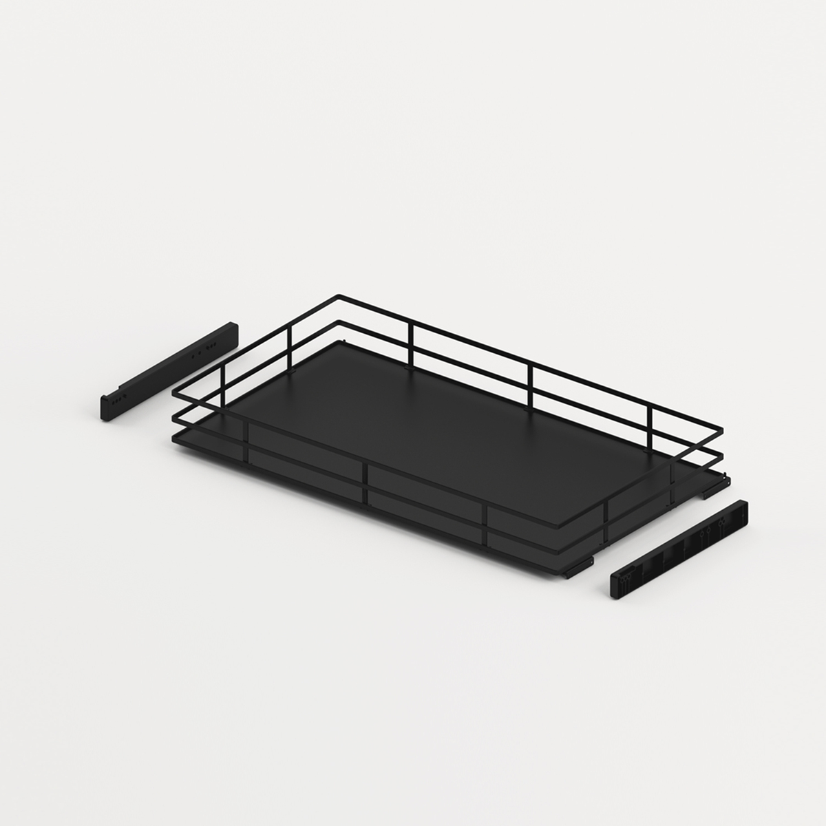 Com fundo HDF e melamina antracite de 5 mm. Inclui par de distanciadores. Capacidade de carga de 20 kg. Requer compra das corrediças separadamente (ver artigos relacionados).
