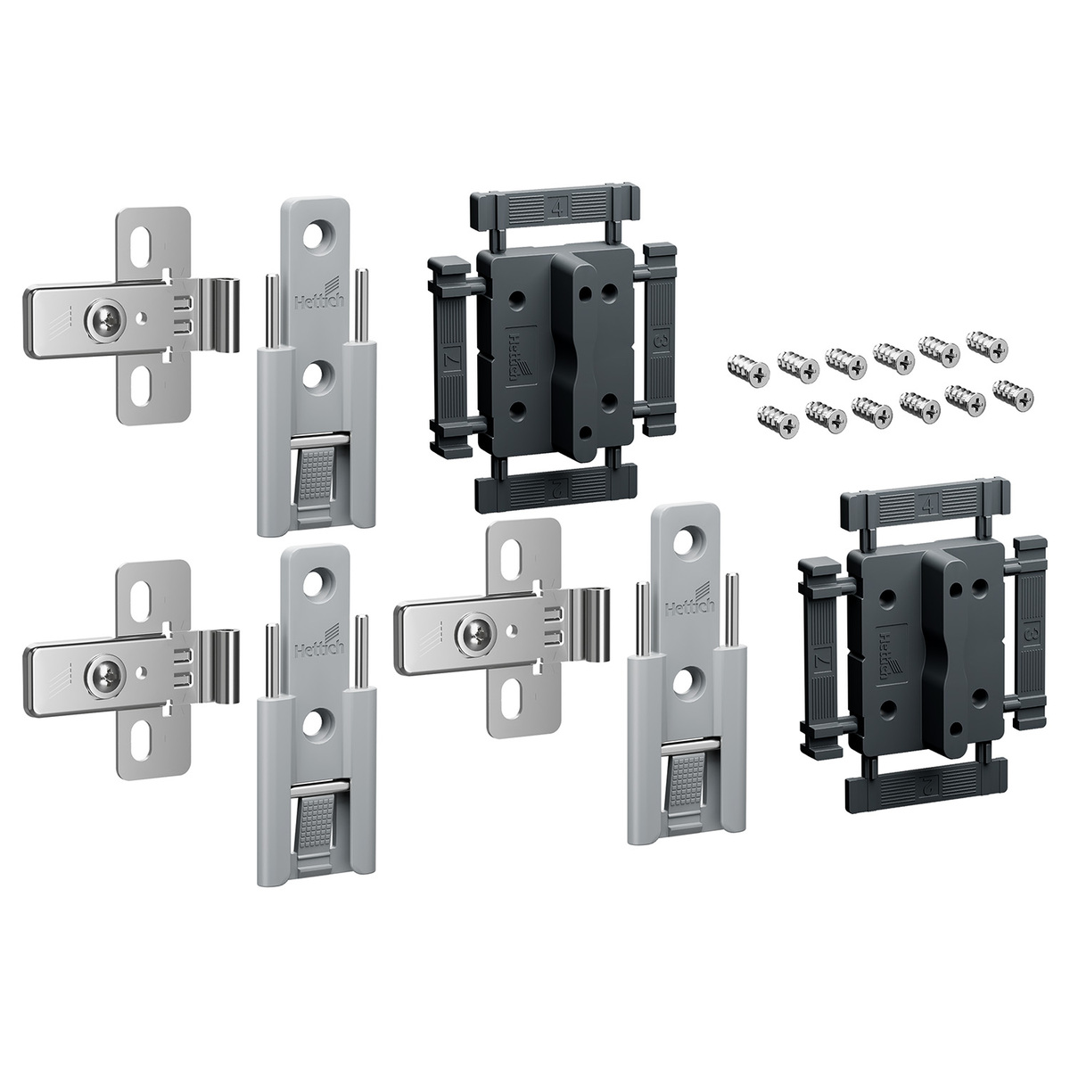WingLine L, Conjunto de dobradiças centrais de montagem rápida reguláveis, cinza, 3 unidades