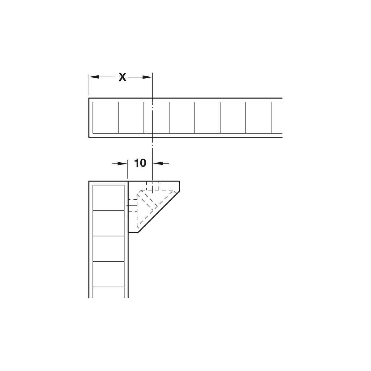 Ligador de canto universal, largura 44 mm, branco