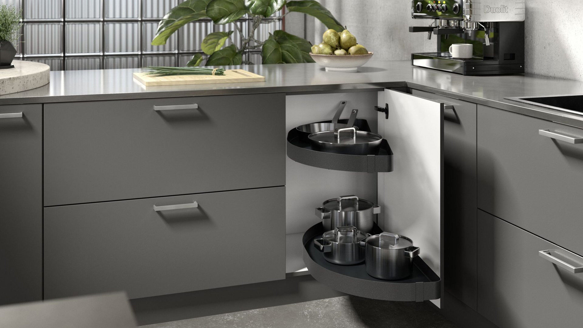 Cesto deslizante Salso em Antracite O cesto deslizante Salso, da Hettich, é a solução de qualidade alemã para os móveis de canto. Com altura regulável e amortecimento na abertura e no fecho, o seu acabamento antracite é exactamente igual ao acabamento antracite das gavetas AvanTech YOU e InnoTech Atira, providenciando um acabamento homogéneo e uniforme na sua cozinha.