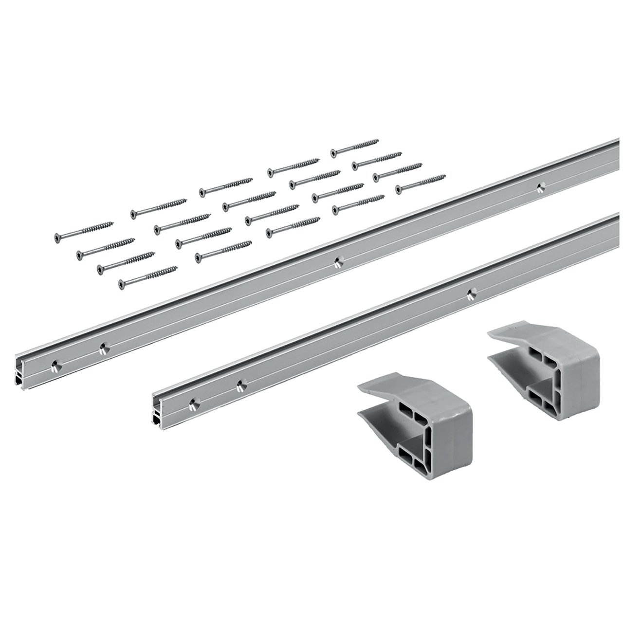 - 2 perfis, alumínio anodizado prata, perfurados