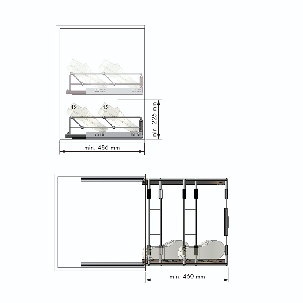 Suporte para Sapatos Extraível em Aço Prata (600-700 x 137 x 476,5 mm)