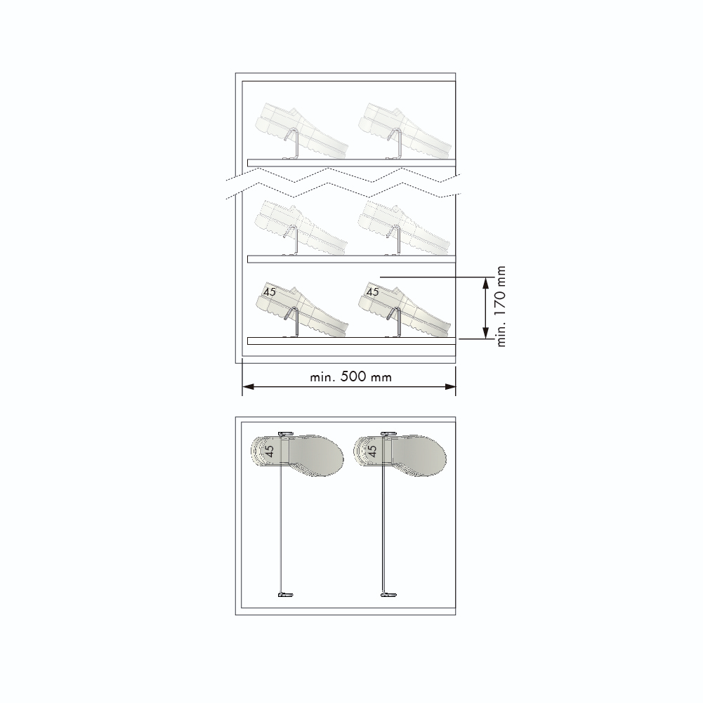 Suporte para Sapatos Fixo em Aço Cromado (530 x 100 x 40 mm)