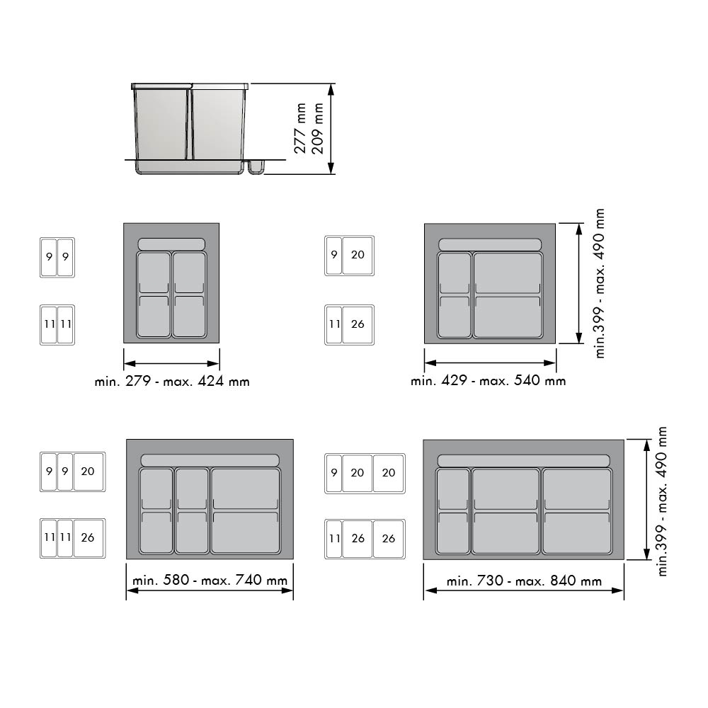Balde do lixo duplo em Plástico Antracite (429 - 540 x 277 x 399 - 490)