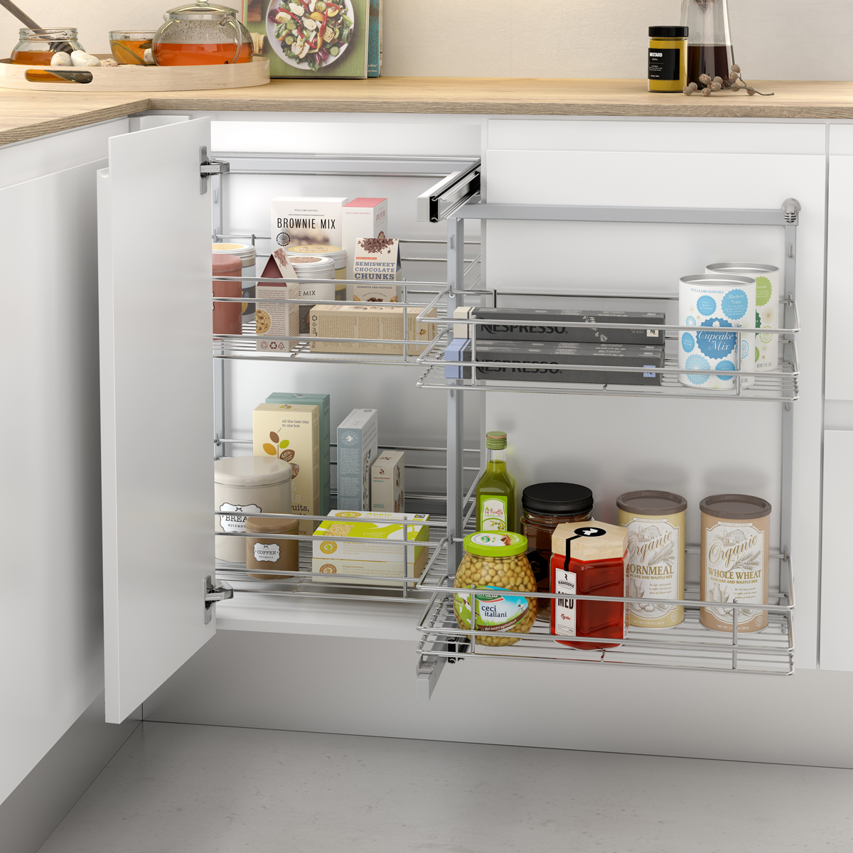 Cesto articulado Prata da linha Classic com capacidade para 9,5 kg (cesto interior) e 8 kg (cesto exterior).