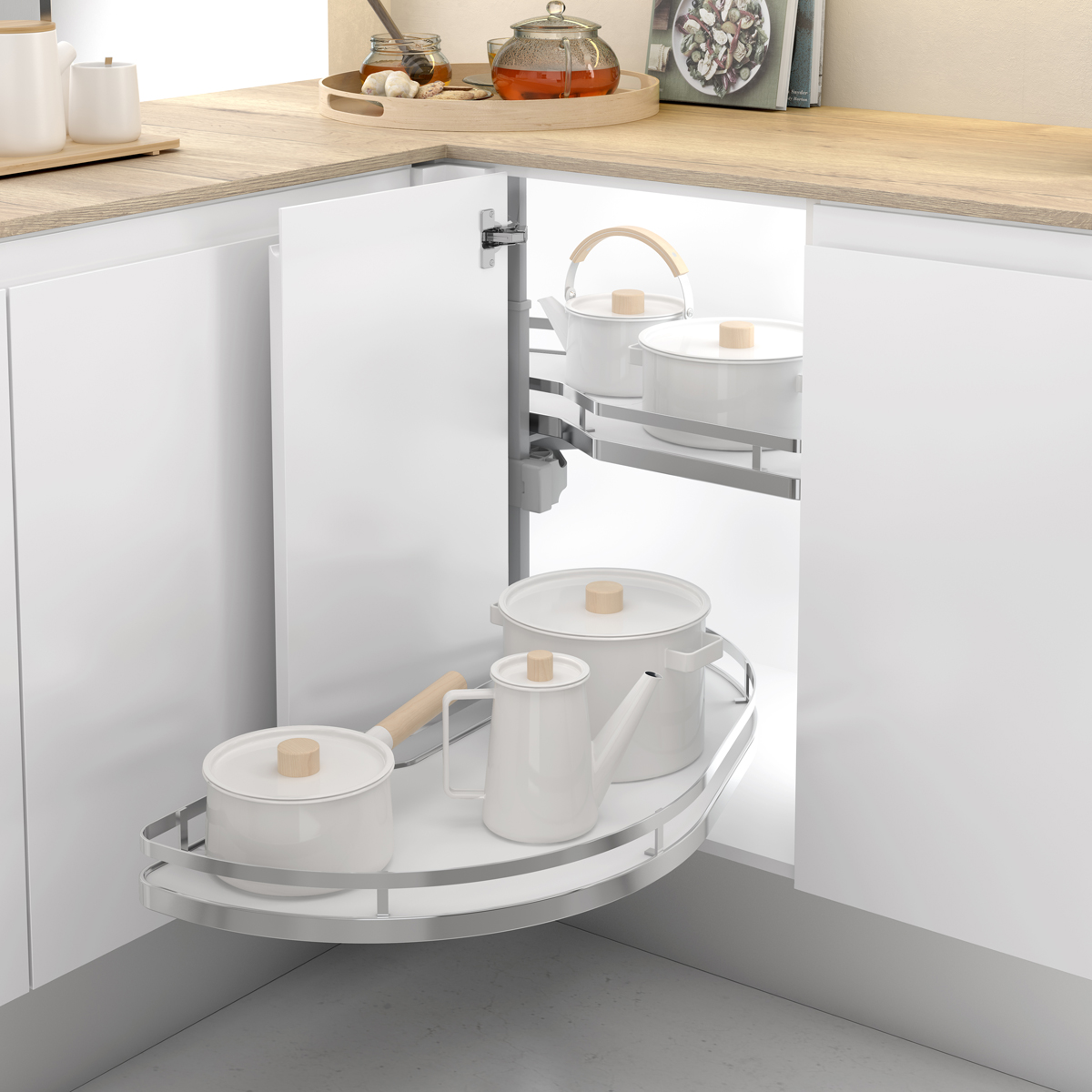 O cesto Dolphin tem base em melamina e suporta 20 kg por cesto. Com amortecimento quer na abertura quer no fecho, é um sistema que permite a optimização do espaço e combina ergonomia com conveniência.