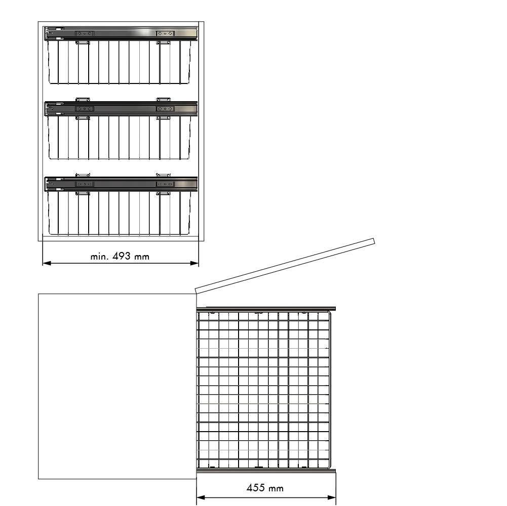 Cesto multi-usos da linha Classic para móvel de 600 e capacidade para 45 kg. Adaptável a ilhargas de 16 a 19 mm de espessura. Inclui protecção para dobradiças.
