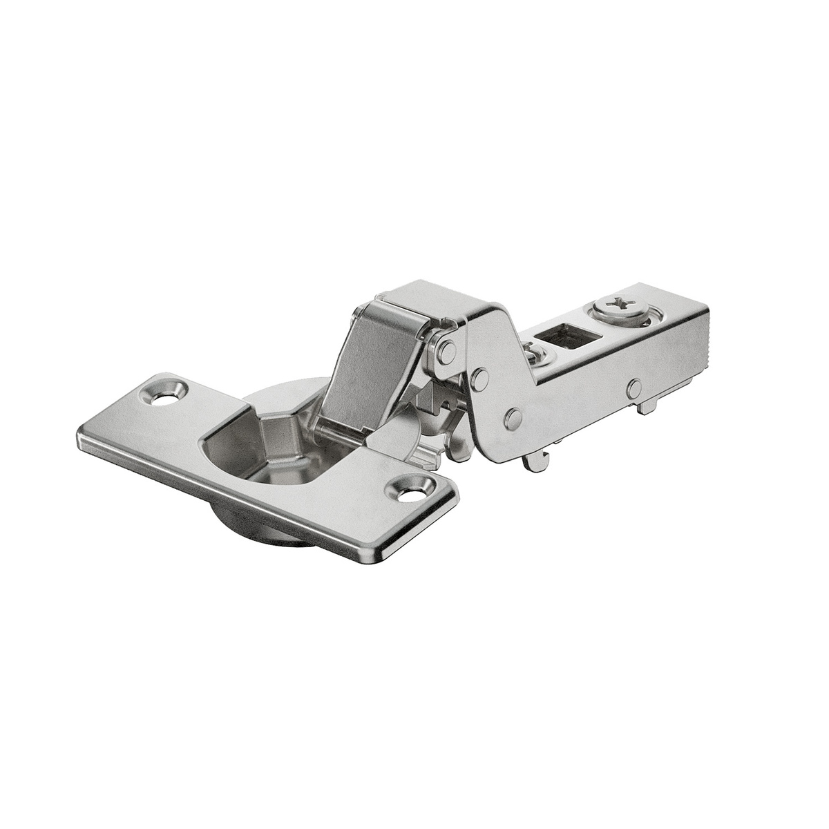Dobradiça Veosys 100° Curva, aço inoxidável, copo baixo, com amortecedor, com mola (para aparafusar)