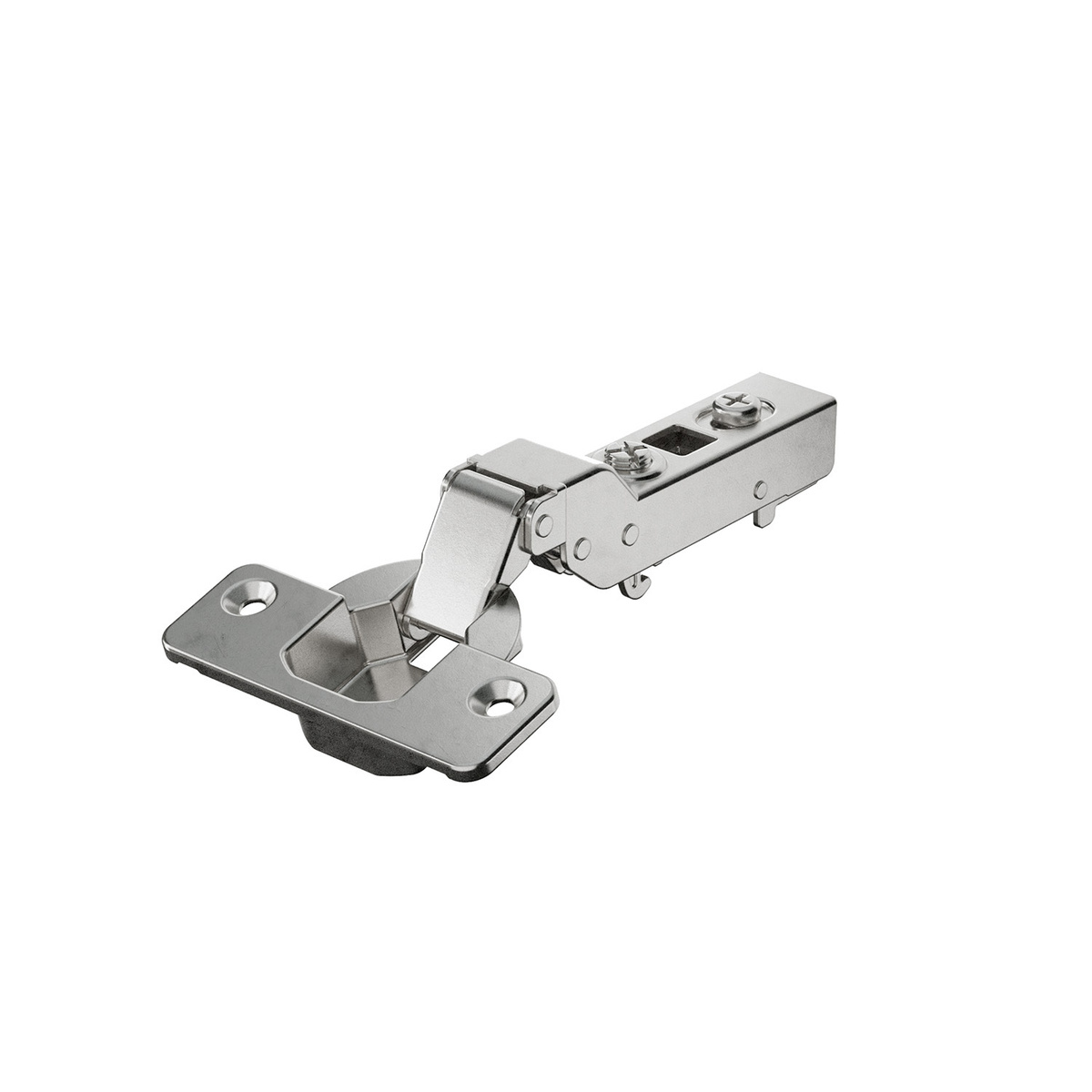 Dobradiça Veosys 105° Meia-curva em aço inoxidável com amortecedor, com mola (para aparafusar)