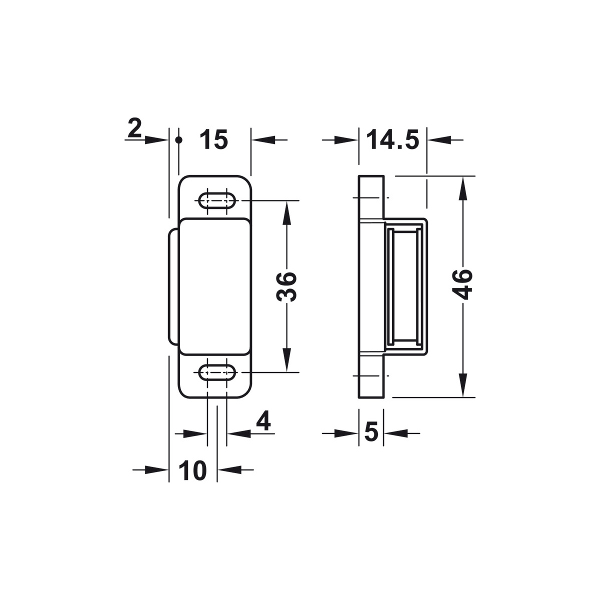 Caixa de fecho magnético, força de retenção 2,0 kg, para aparafusar, rectangular