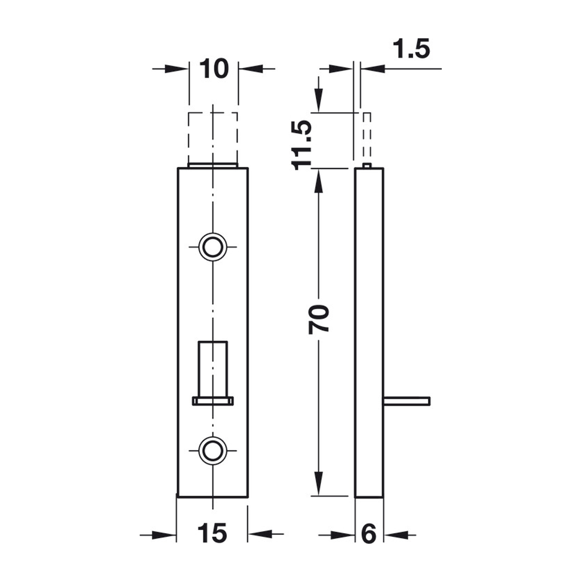 Niquelado, comprimento: 70 mm, elevador: 11,5 mm
