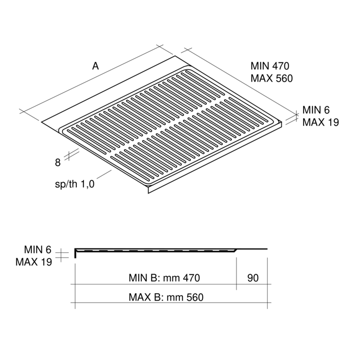 Fundo para móvel lava-loiça, termoplástico cinzento (867 x 560 mm)