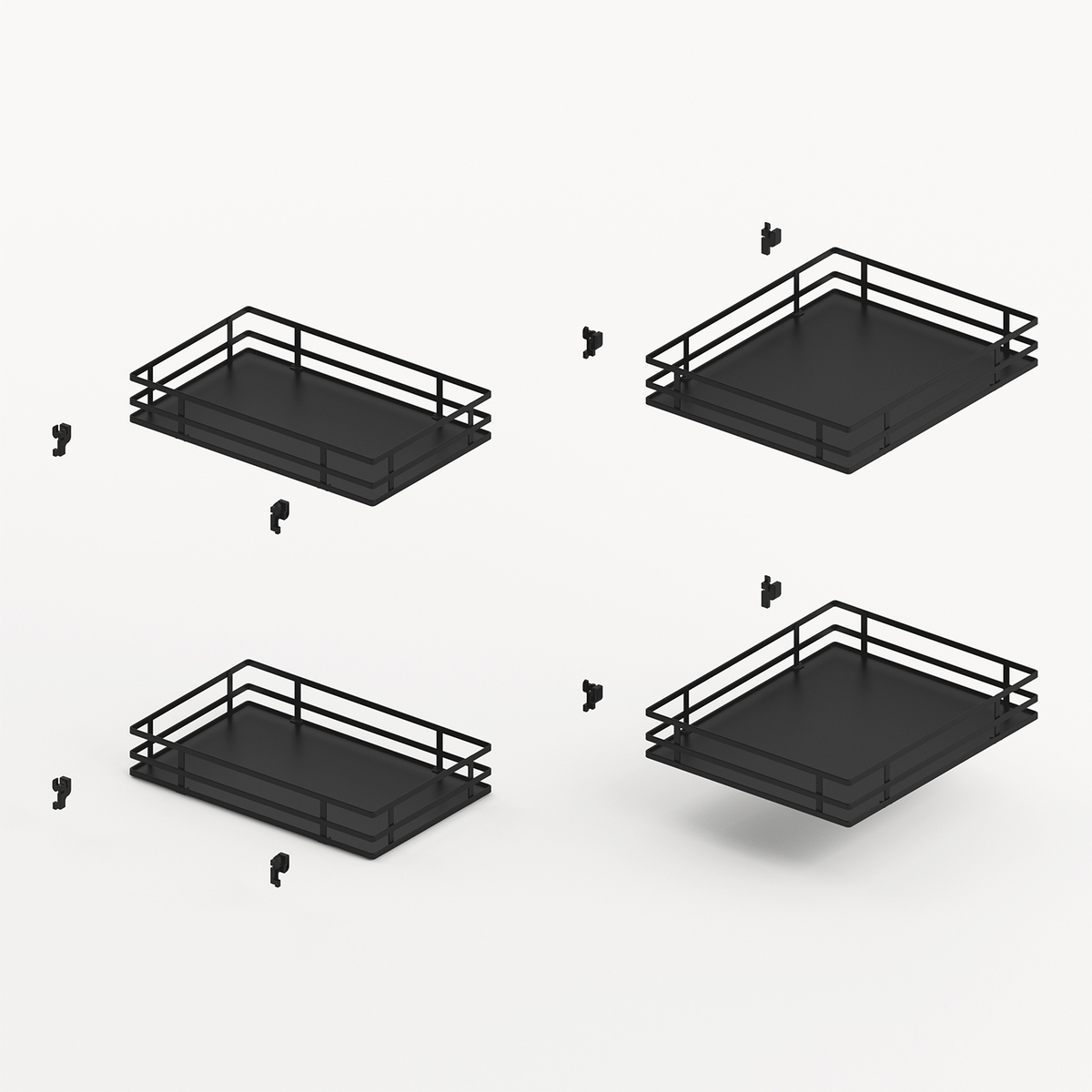 Com fundo HDF e melamina antracite de 5 mm. Capacidade de carga de 7 kg por cesto dianteiro e 9 kg por cesto traseiro. Requer compra da estrutura separadamente (ver artigos relacionados).