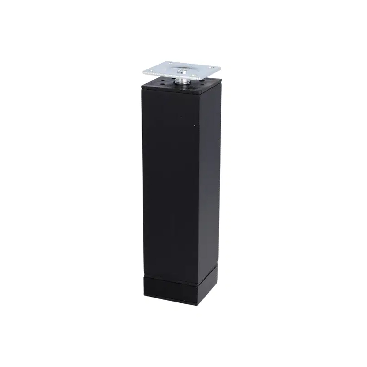 Pé em alumínio regulável em altura (150 x 40 mm), acabamento em prata