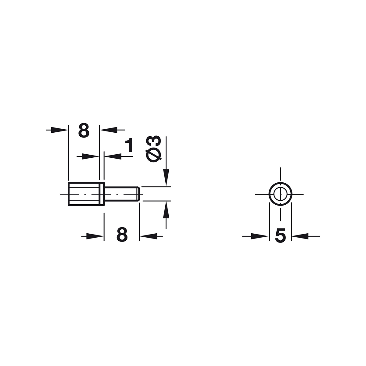Suporte de prateleira, para embutir em furo com diâmetro de 3 mm, aço com tampa de plástico de 5 mm