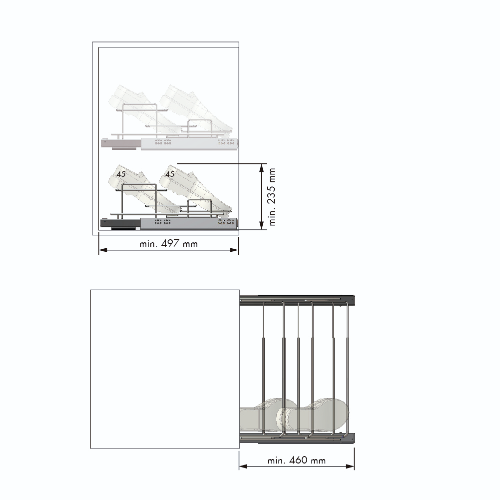 Suporte para Sapatos Extraível em Aço Cromado (450-650 x 170 x 487 mm)