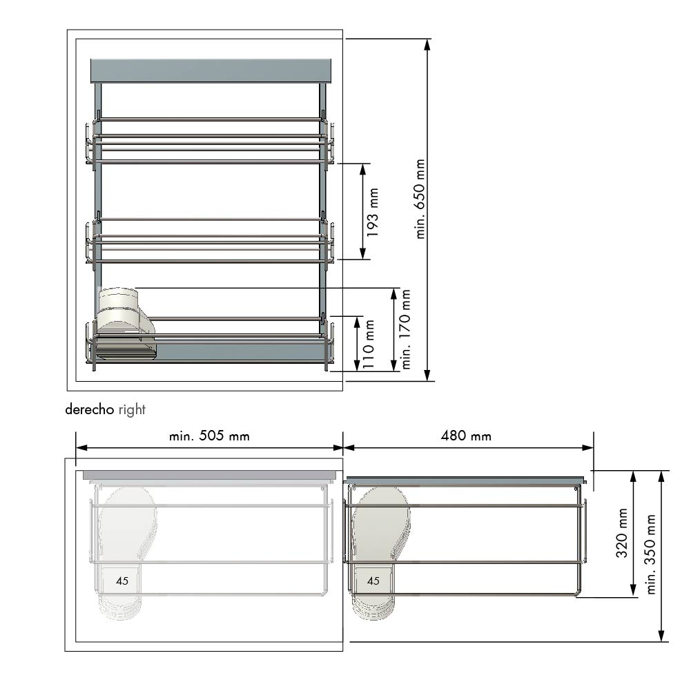 Suporte para Sapatos Prata (linha Classic) com Fixação Lateral (320 x 600 x 495 mm)