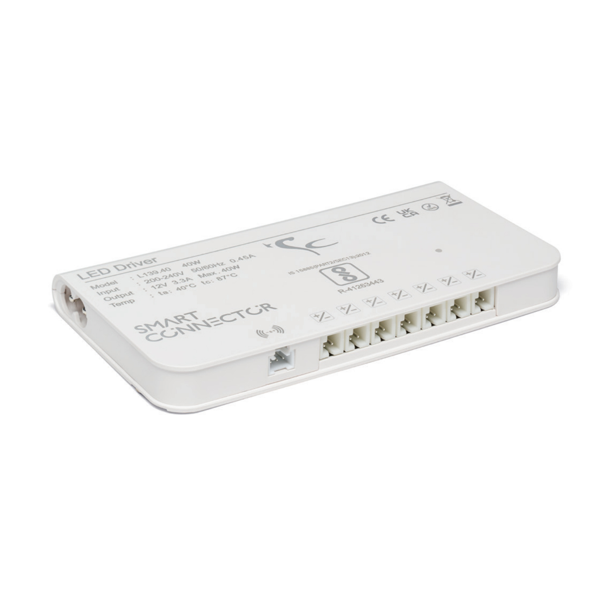 Transformador compacto e fino, com até 10 saídas LED + saída de sensor.